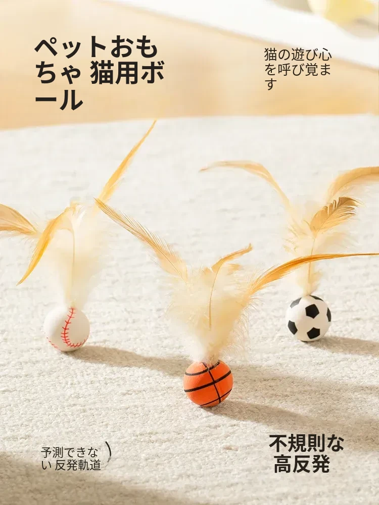 猫が夢中になる!新発売のエクササイズボール、羽根付きおもちゃで遊びながら元気を消耗!楽しいひとときを提供する、猫ちゃんのためのストレス解消アイテム!