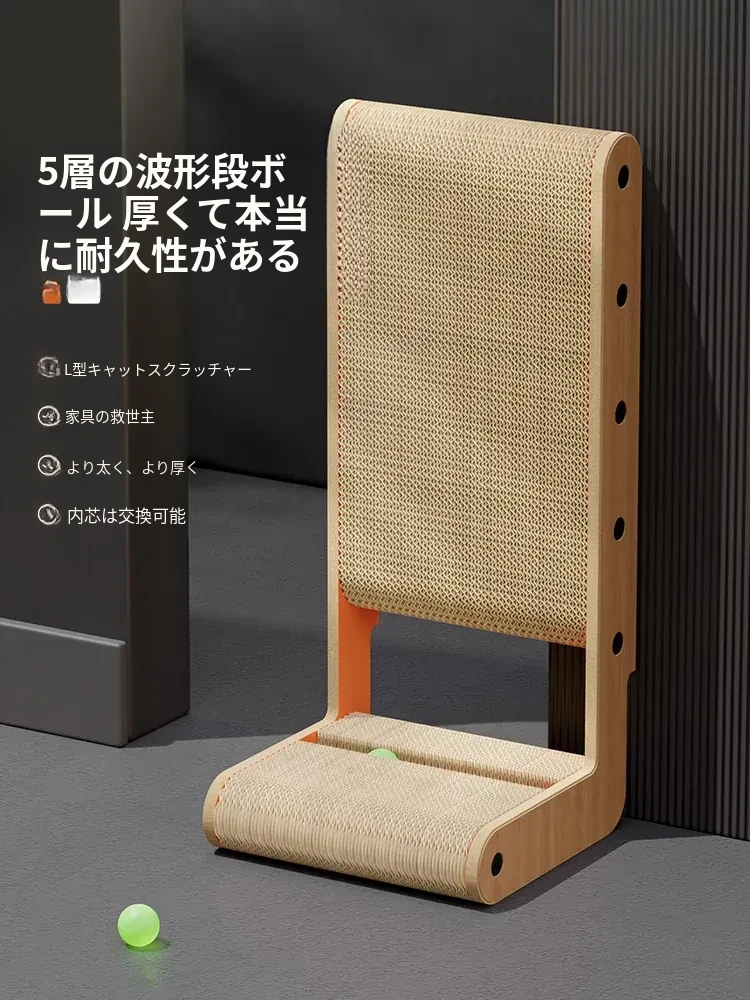L型キャットスクラッチャー - 耐久性抜群、毛が抜けない!スタンド式で広々とした猫の巣、頑丈な段ボール製。大きなサイズで愛猫も大満足!楽しく爪を研げるおもちゃです。