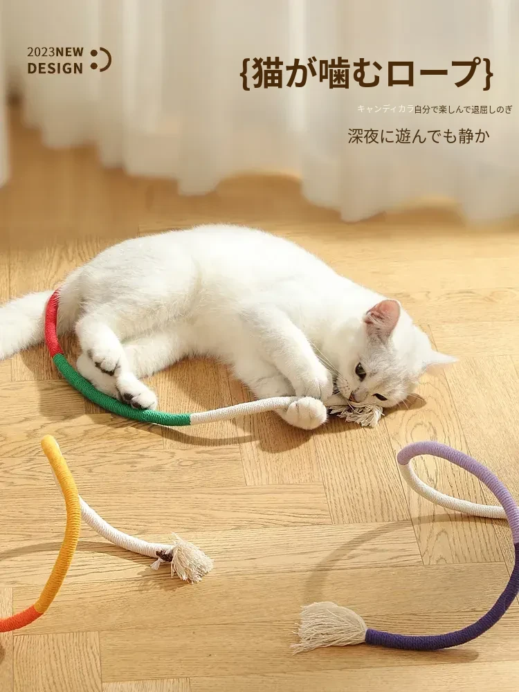 自分で楽しむ猫のおもちゃ!ミント付きネコじゃらし&歯磨きロープボール、子猫にぴったりの必需品!遊びながらストレス解消、健康な歯をサポートします!