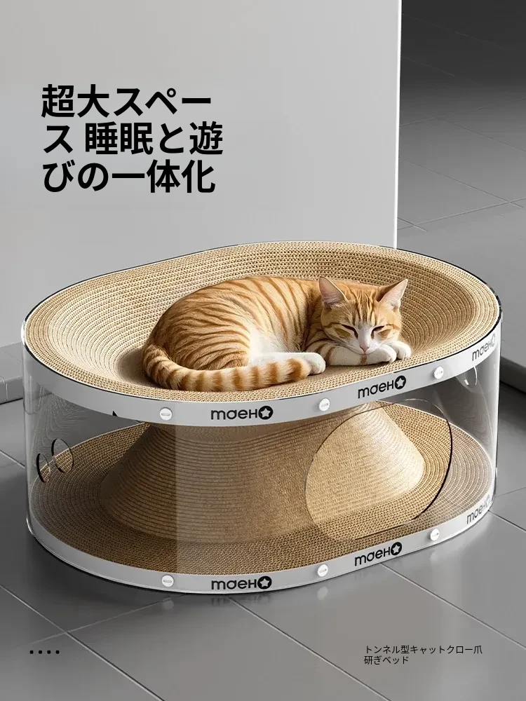 耐久性抜群!猫の爪とぎと隠れ家が一体化したキャットトンネル。脱落しないコルゲート紙を使用し、猫ちゃんの遊び心をくすぐる二重構造で退屈知らず!